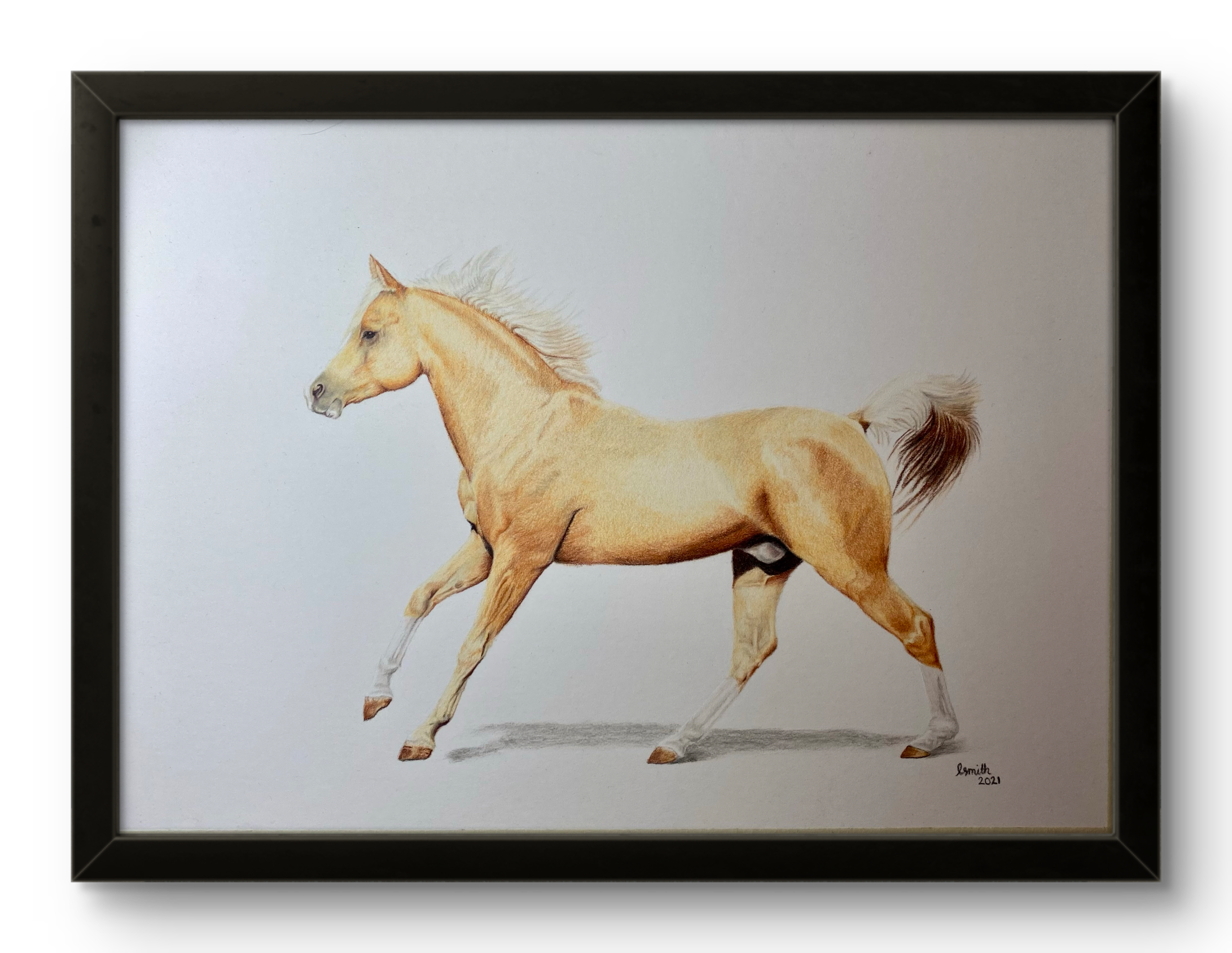 After 12 years working in the racehorse industry, I decided to take the plunge into being an artist. It was sad to leave the industry; however, I still get to enjoy my favourite animal on my drawing board quite often.